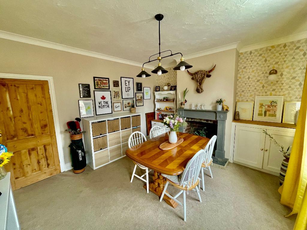 12' 11'' x 13' 2'' (3.94m x 4.02m) Having a side facing circular stained glass double glazed window, multi-fuel stove, with wooden mantle piece over, stone flagged hearth, TV aerial point and a central heating radiator. A door gives access to the Cellar Rooms.