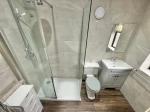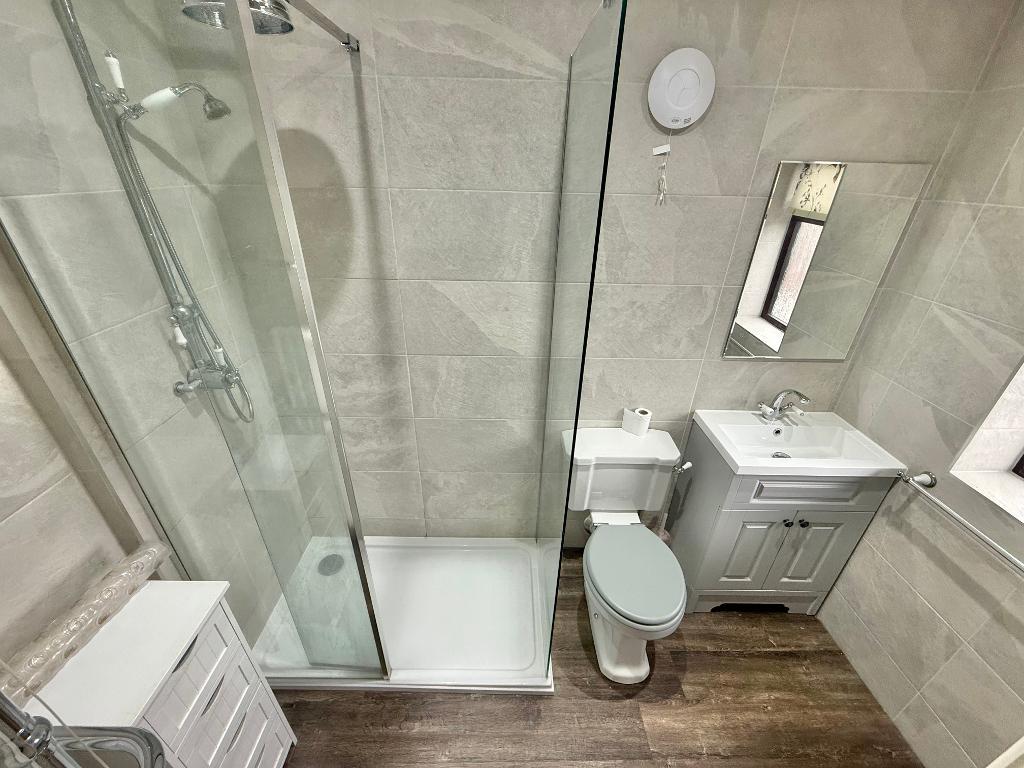 A modern shower room, benefiting from a 3 piece suite including a large walk in shower with chrome mixer shower fitting, a vanity sink and WC along with stylish radiator and full tiling to the walls.